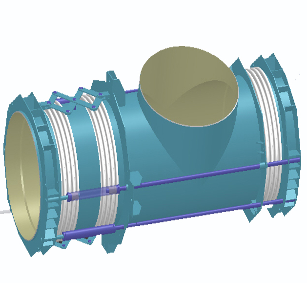 特點(diǎn):復(fù)式膨脹節(jié)由一個(gè)中間管段連接兩個(gè)波紋管組成,用于吸收組合位移與角位移;該模型用于橫向位移較大的管網(wǎng);壓力可由拉桿來(lái)承受