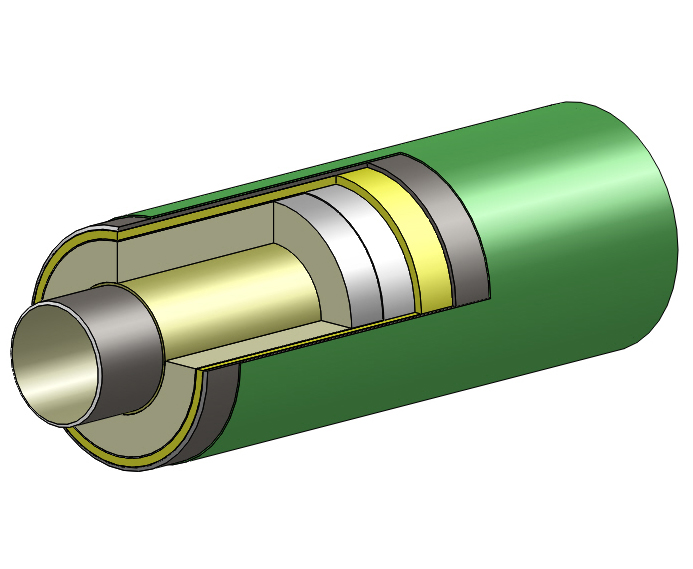 特點:主要針對管道直埋敷設過河、水位高于管位敷設環(huán)境或在水中敷設設計的、采用鋼套鋼基本形式但對保溫層進行獨立密封處理的預制直埋蒸汽保溫管。
